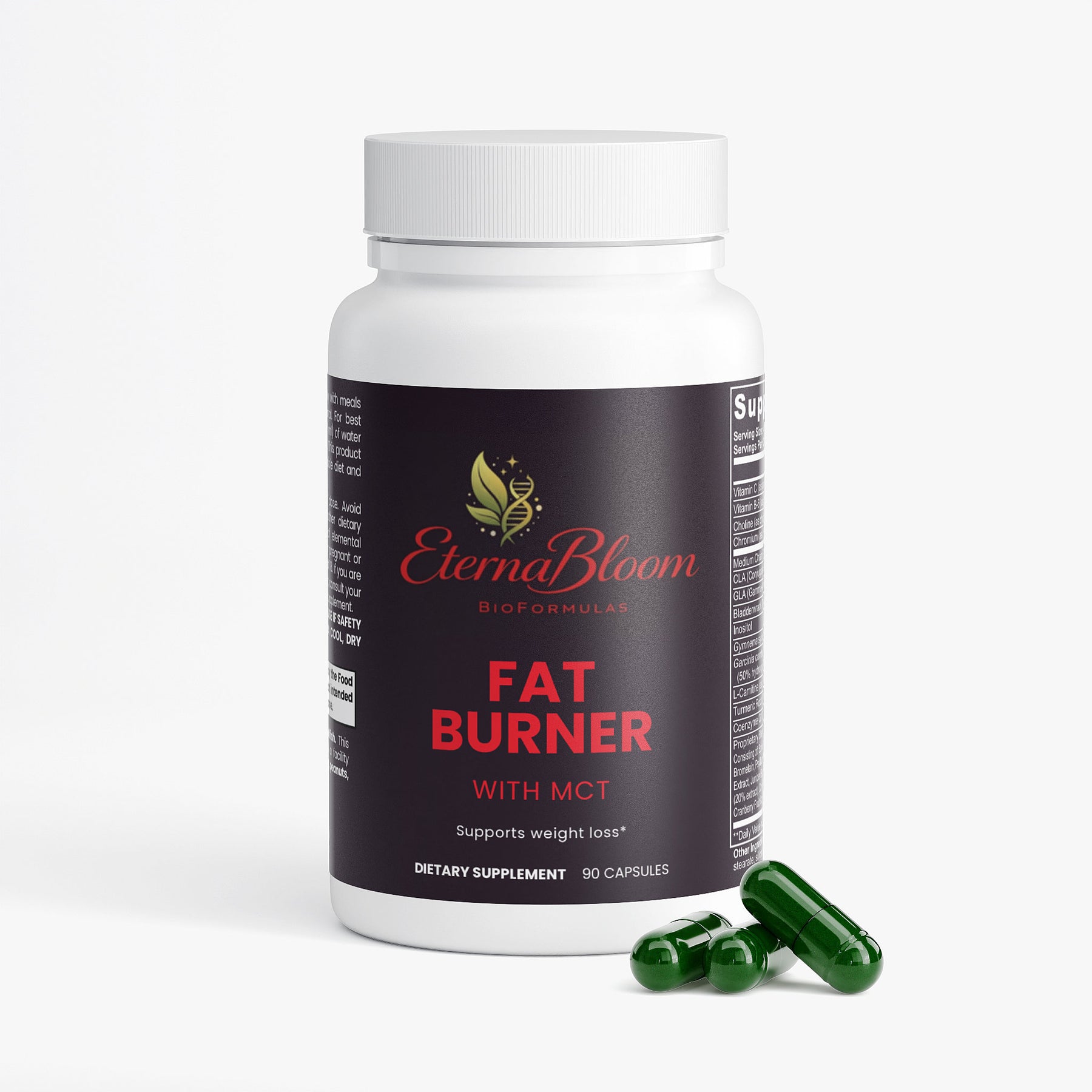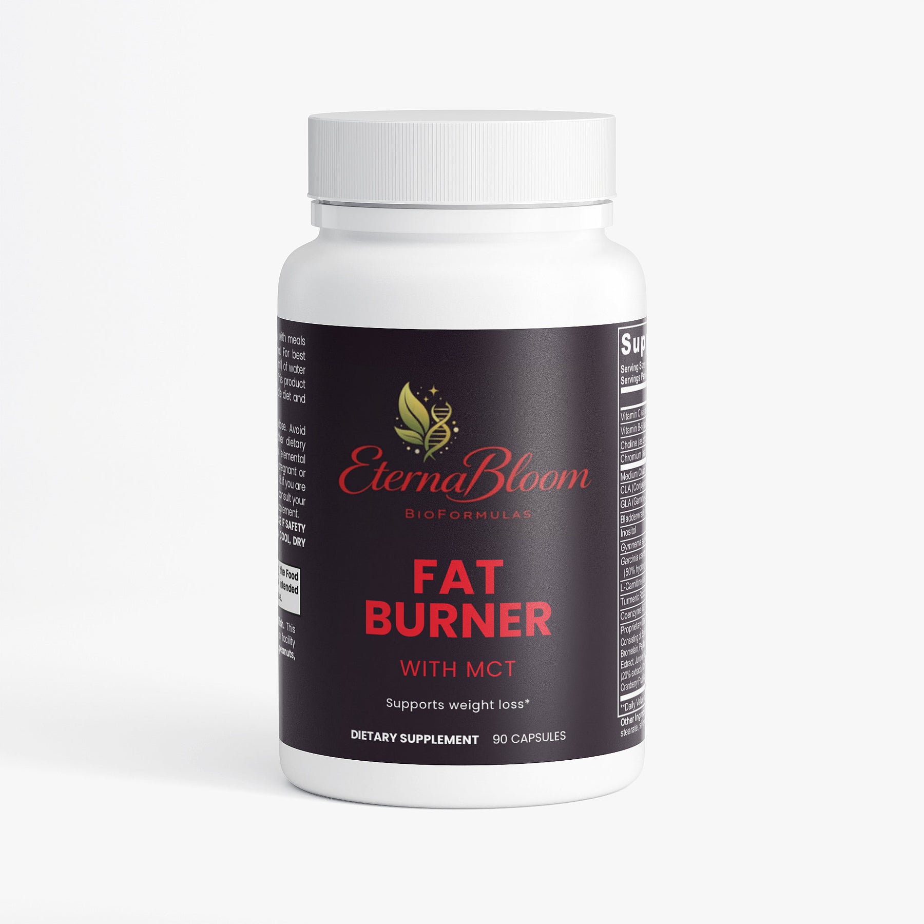 Fat Burner with MCT combines Vitamin C, Vitamin B6, Choline, Chromium, L-Carnitine, and medium-chain triglycerides (MCT) to deliver a healthy approach to facilitating metabolic performance and consequent weight loss.